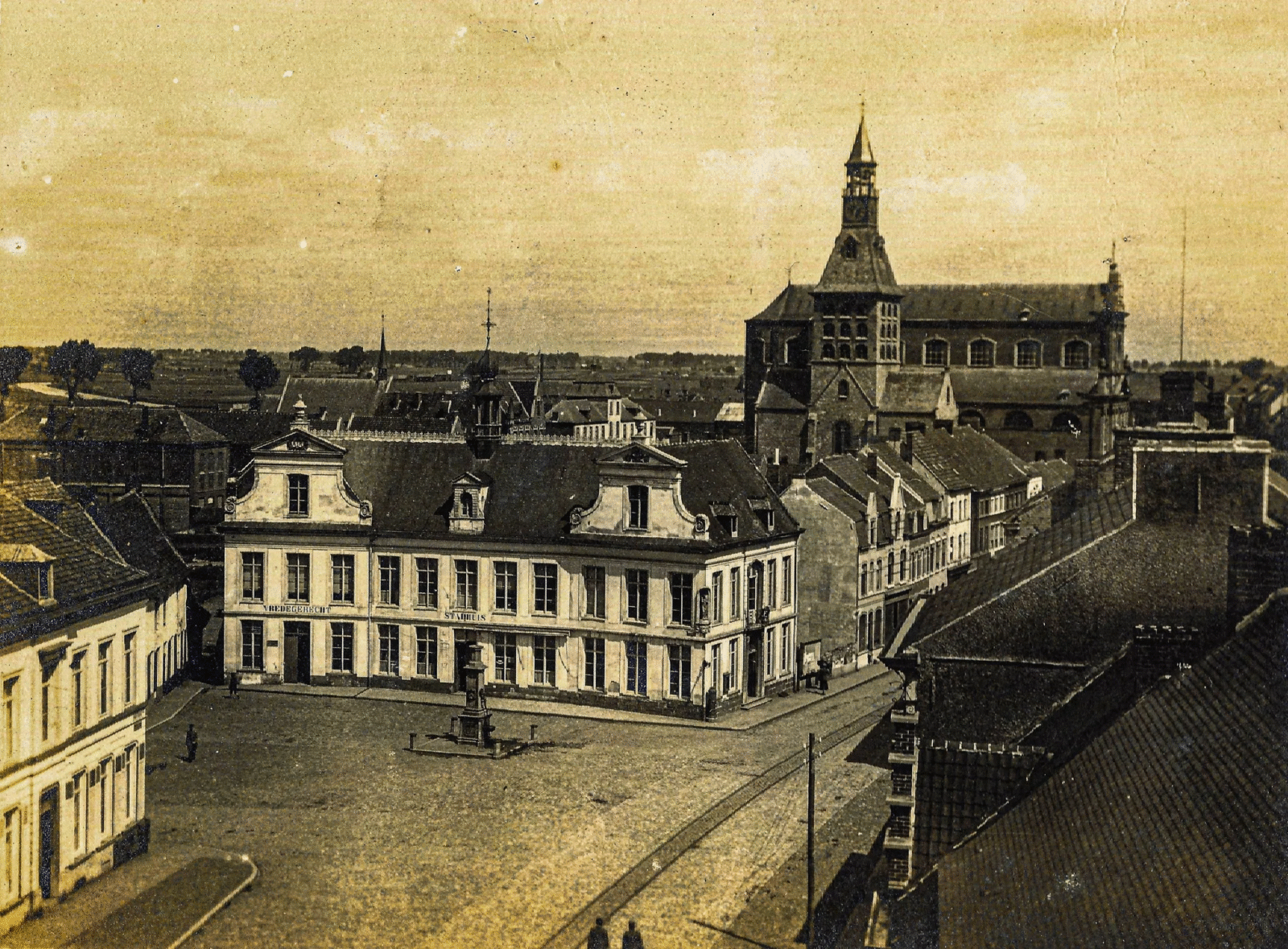 De doorgaande gevel op de begane grond bindt de reeds bestaande en de nieuwe gebouwen tot een hecht ensemble aan elkaar. Dit basement is rondom het gehele ensemble als een eenheid ontworpen, zowel buiten langs de Vrijdomkaai, het Marktplein en de Leiestraat, als binnen rondom het centrale hof. De eenheid wordt bewerkstelligd door het materiaalgebruik. Een blauwgrijze granieten plint vormt als het ware een omhoog gezette continuering van het maaiveld. Daarenboven wordt een beige-grijs genuanceerde baksteen toegepast die qua kleur bemiddelt tussen de blauw-grijze plint en de blond gekleurde bovenbouw.